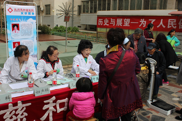4月14日上午9时,兰州慈和堂医院的妇产科、内科、中医科、儿科、外科、护理部等科室的10位专家和技术骨干,深入到雁北街道小雁滩社区,热情接待了82名看病、咨询、检查血糖、测量血压的社区群众。通过询问病情,明确诊断,指导治疗。发放卡片资料宣传预防保健知识等,深受社区群众的欢迎和好评。组织这一活动的医院医务科、办公室负责同志一致表示决心把这一便民服务措施坚持不懈抓到底,更好地为提高广大人民群众的健康水平,做出医院新的贡献.
